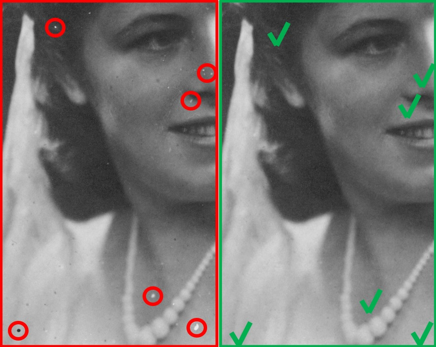 - Fehler korrigieren, z.B. Knickstellen, Kratzer, Partikel etc.